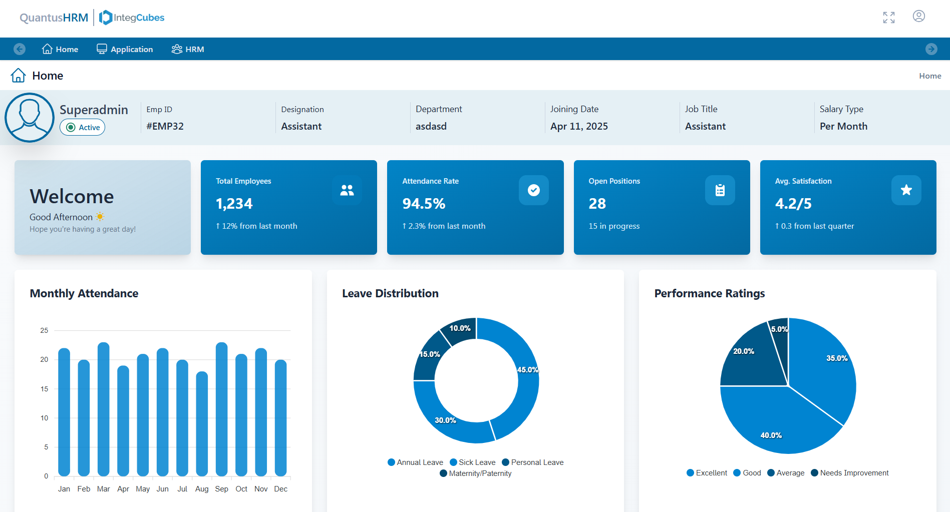 QuantusHRM provides a comprehensive suite of HRM configurators, allowing organizations to customize workflows, policies, and processes. This flexibility ensures the platform adapts seamlessly to diverse business needs and evolving HR requirements.